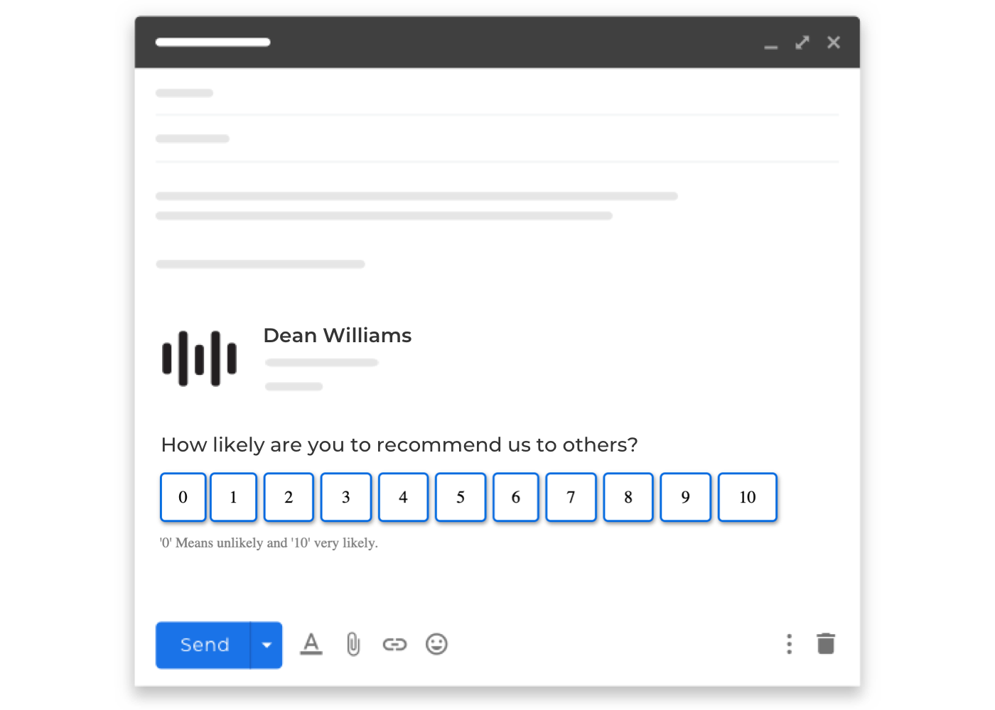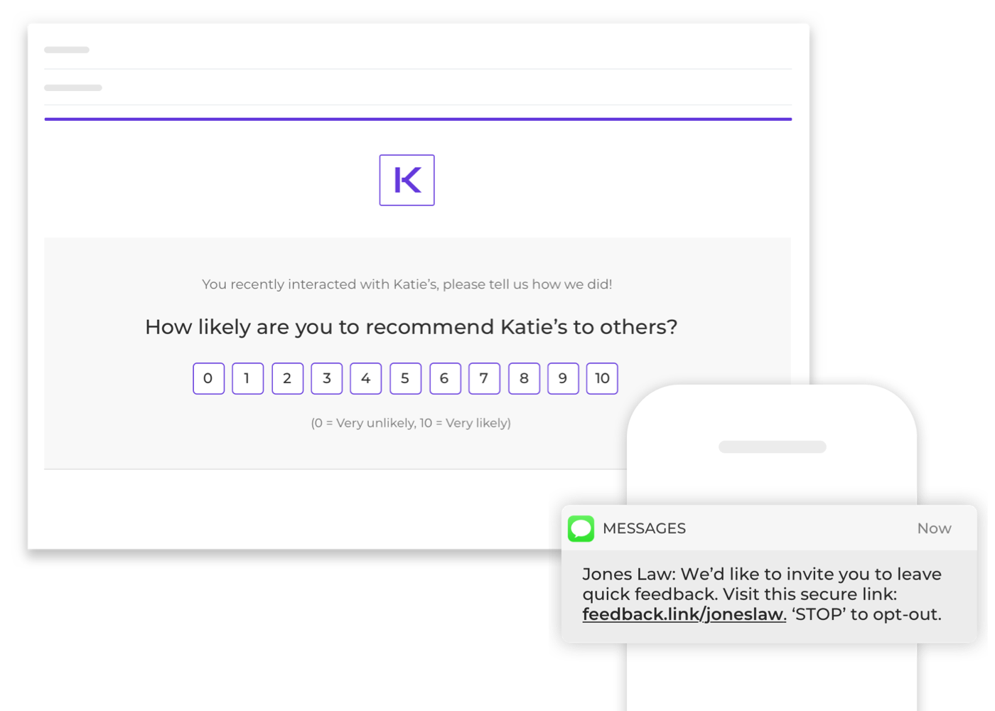 If you choose, your Feedback Link automatically calculates your Net Promoter Score® (NPS) based on customer ratings.
