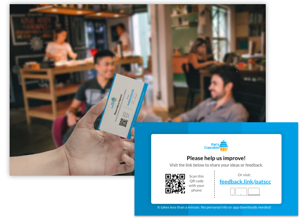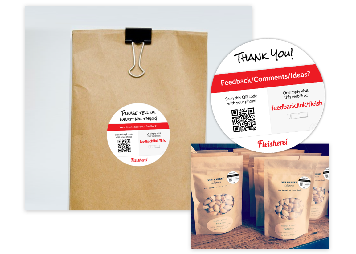 Advertise your feedback link and QR Code on thank you notes, stickers, delivery slips etc.
