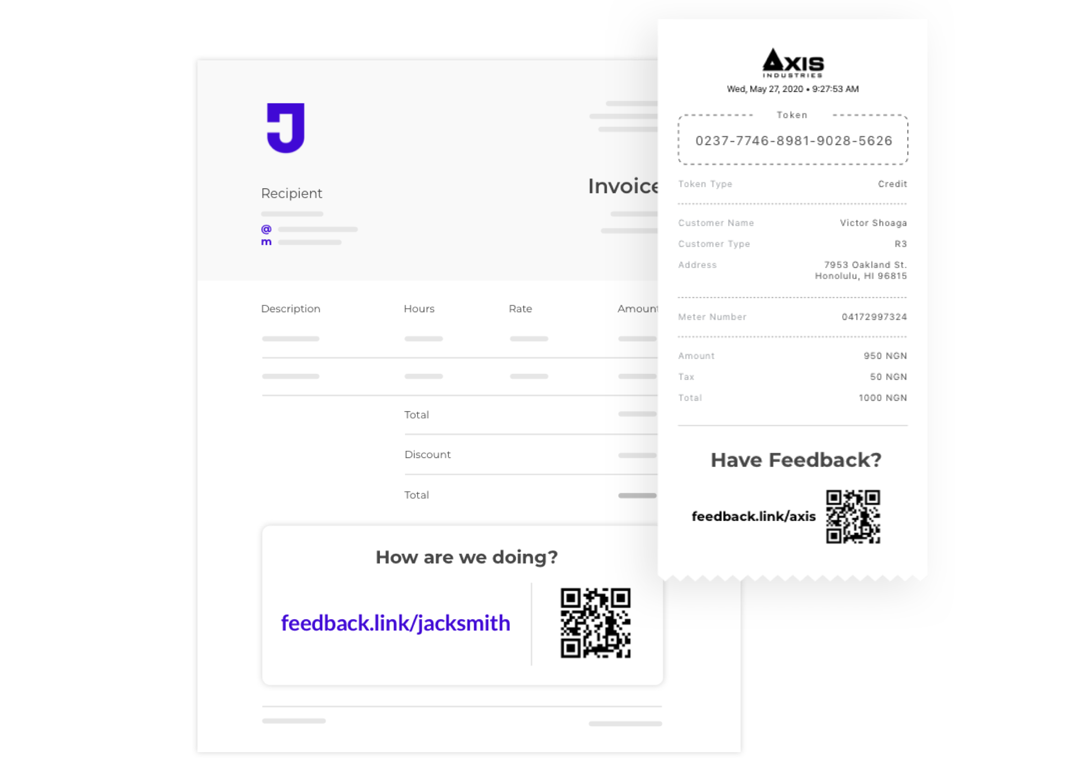 Ask for feedback with your link and QR Code on receipts and invoices.